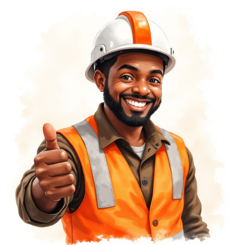 free clipart illustration of of black construction worker smiling and giving thumbs up (7) →