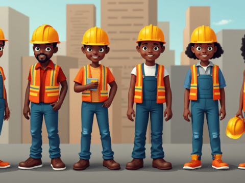 construction team animated characters