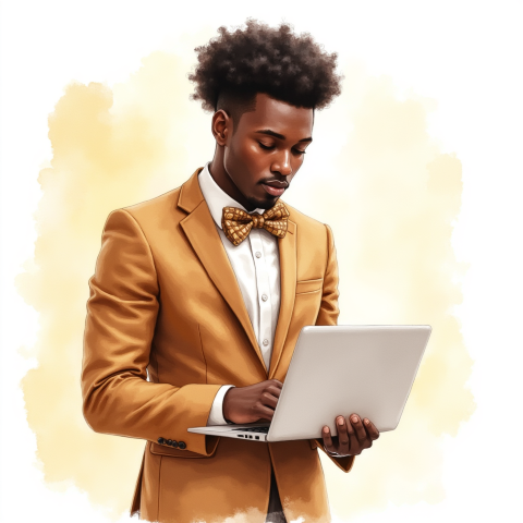 free clipart of business person facing camera smiling and using laptop computer (11)