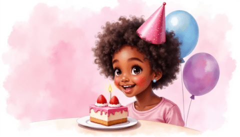 free clipart illustration of a black happy birthday girl with cake (14)