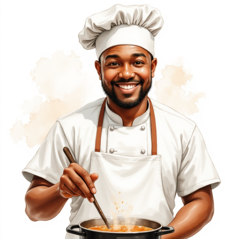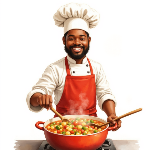 free clipart illustration of black chef stirring a pot