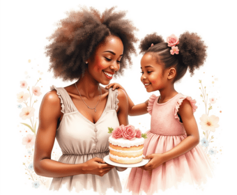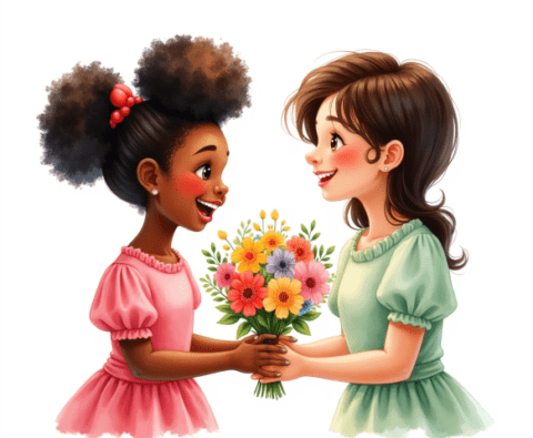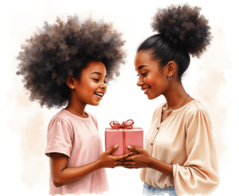 free clipart illustration of black child giving mom mothers day gift (2)