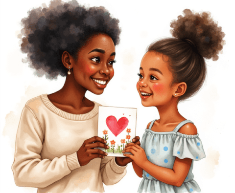 free clipart illustration of black child giving mom mothers day gift (5)