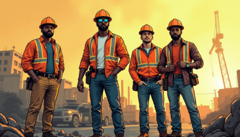 free clipart illustration of black construction workers on job site (1)