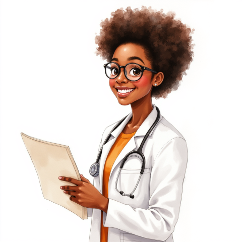 free clipart illustration of black female medical doctor holding a report