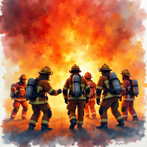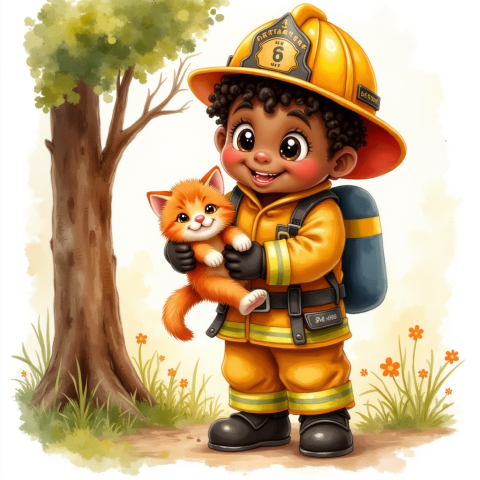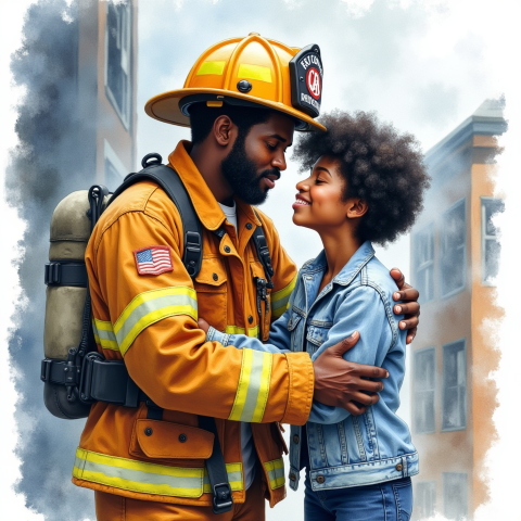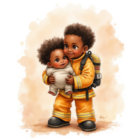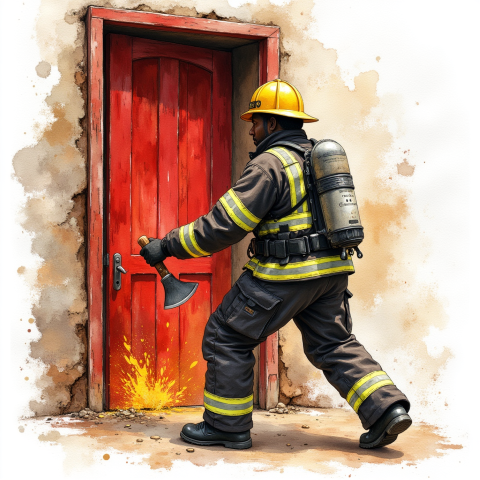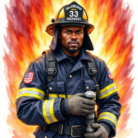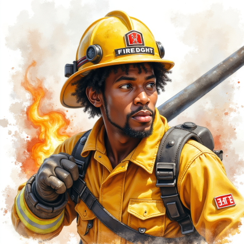 free clipart illustration of black fire fighter on the job (1)