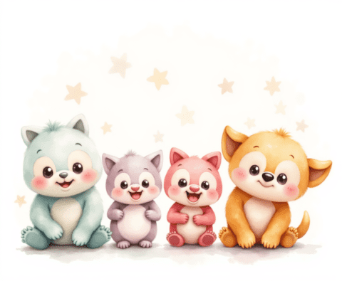 cute cartoon animals with stars