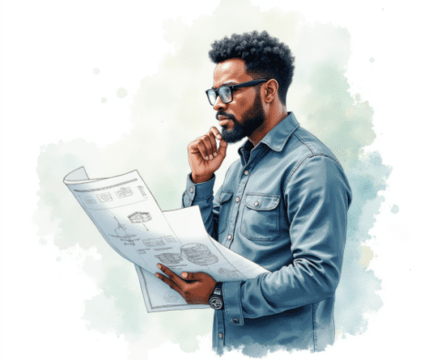 architect analyzing blueprint