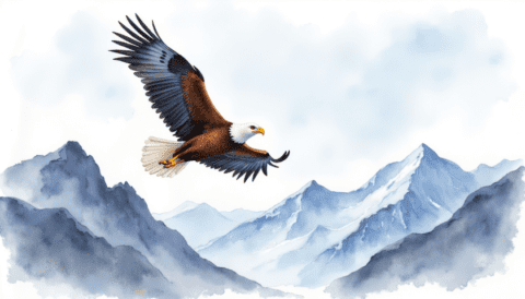 bald eagle flying over mountains