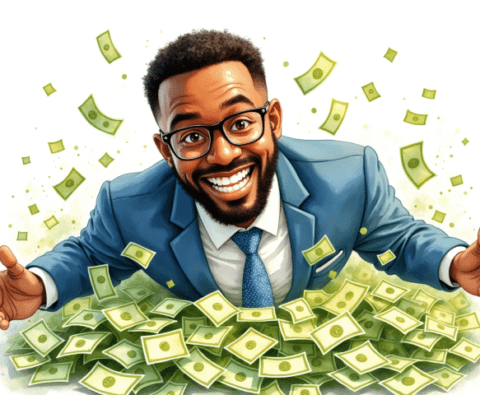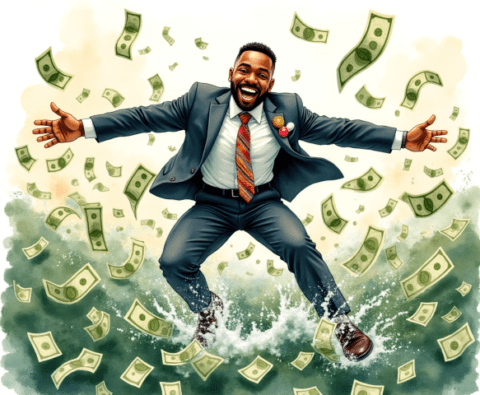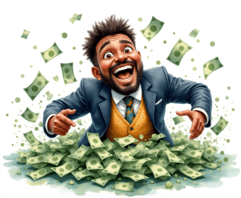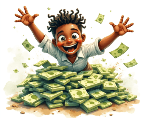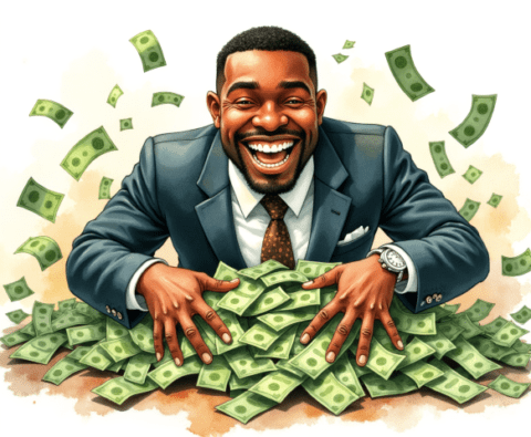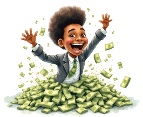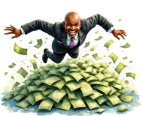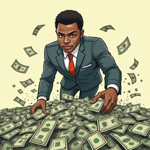 free clipart illustration of a black business rolling in a pile of cash money (1)