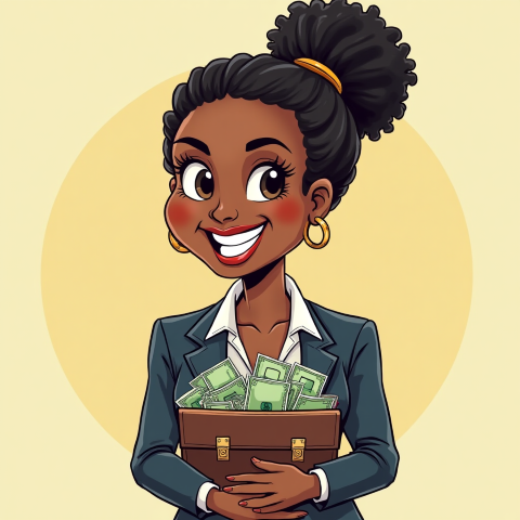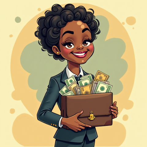 free clipart illustration of a black business woman holding bag with cash and documents (1)