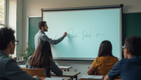 math teacher smiling chalkboard