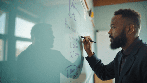 mathematician writing on chalkboard