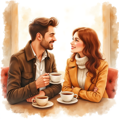 free clipart illustration of a coffee date (3)