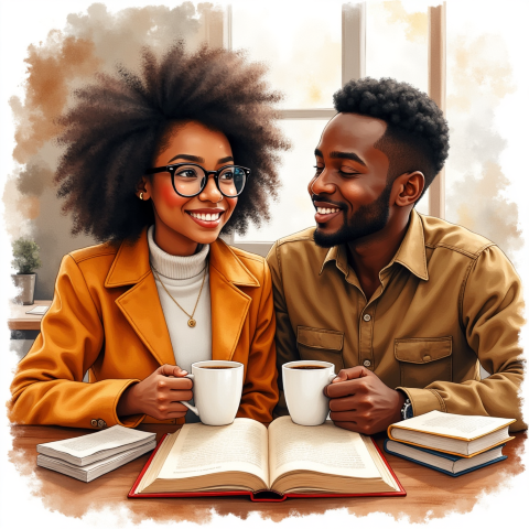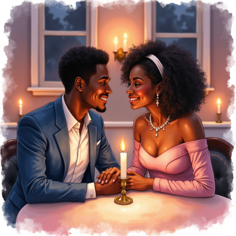 free clipart illustration of black couple on dinner date (1)