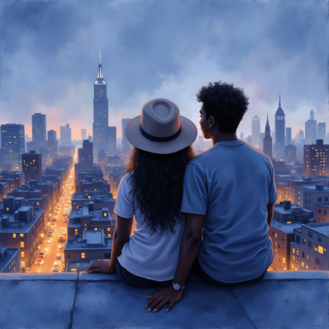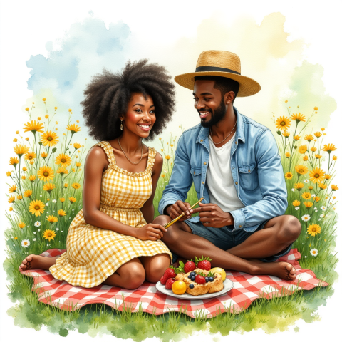 free clipart illustration of black couple outdoors date (1)