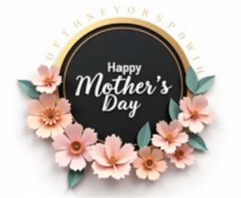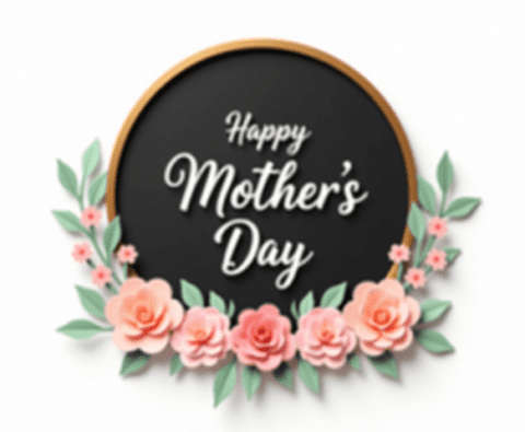 free clipart illustration of black and gold mothers day circle design with flowers (1)