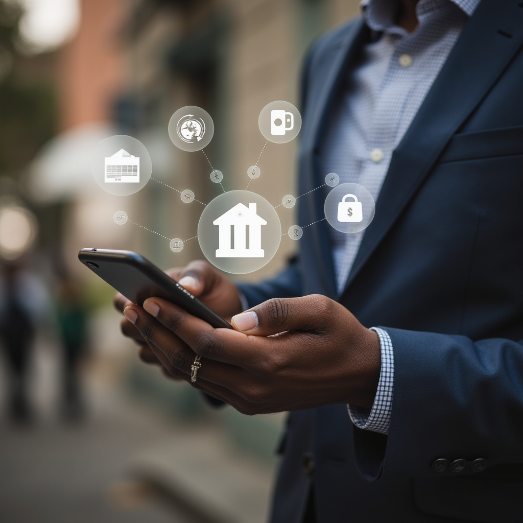 digital banking concept businessman mobile phone