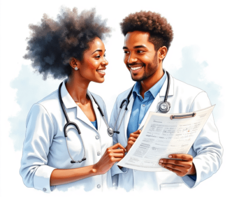 medical professionals discussing report