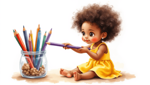 free clipart illustration of black child doing homework schoolwork (10)