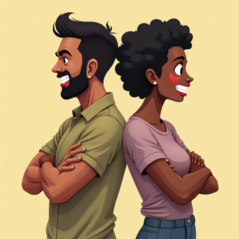 free clipart illustration of black couple angry with back towards each other (1)