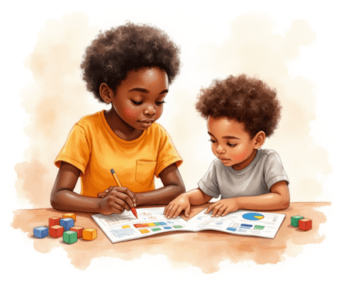 Free clipart ilustration of black child student in classroom (4)