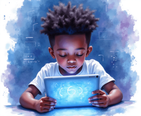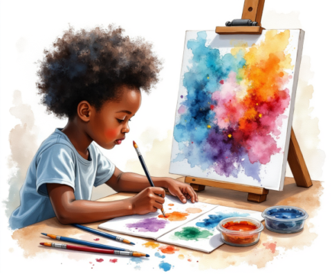 Free clipart ilustration of black child student in classroom (3)