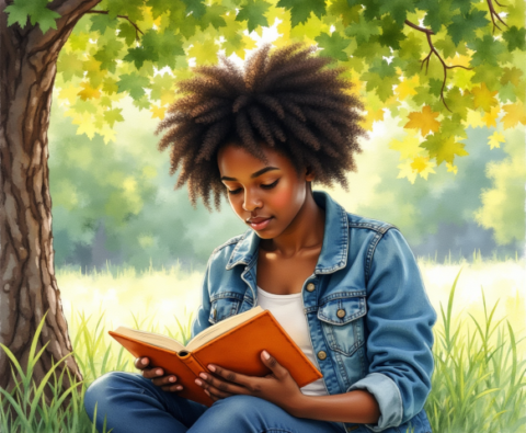 Free stock illustration image of student studying (1)