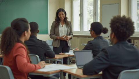 Free stock photo of black students in a classroom learning (1)