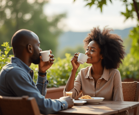 free clipart illustration of black couple enjoying tea outdoors (1)