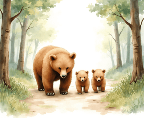bear family forest path