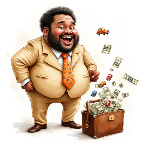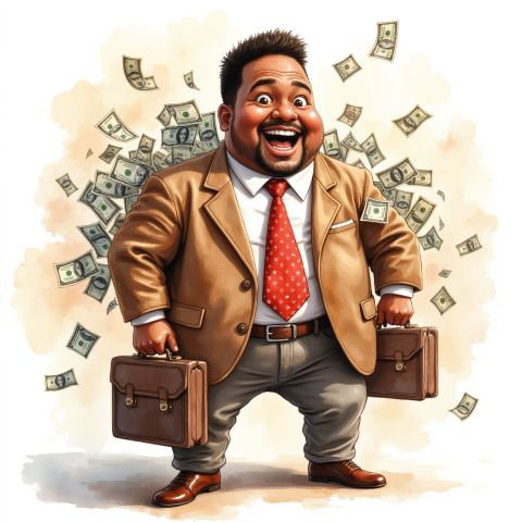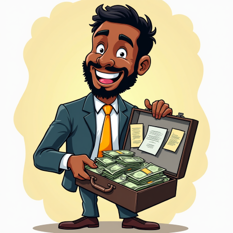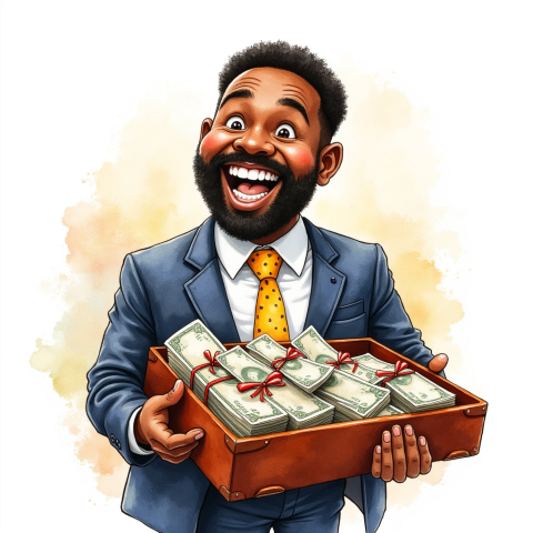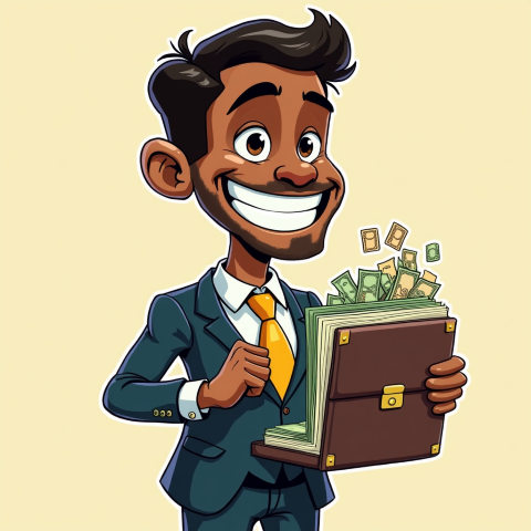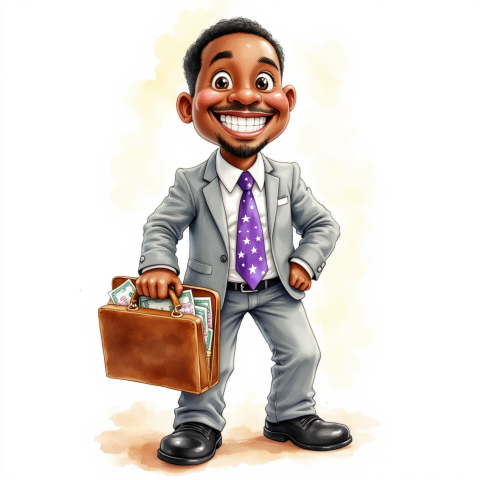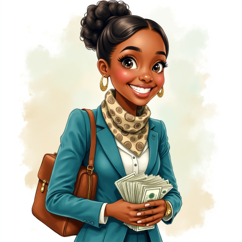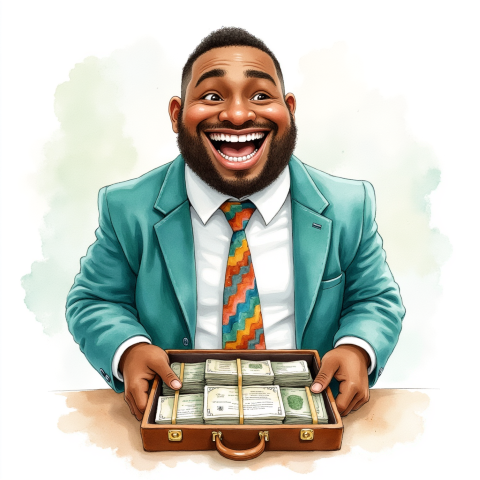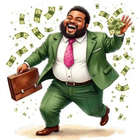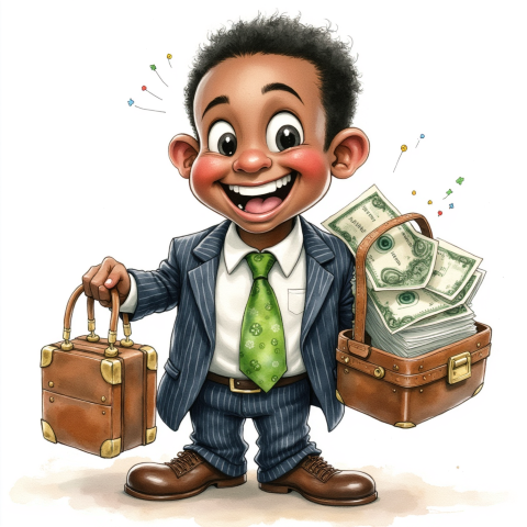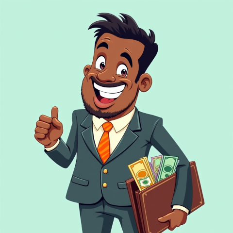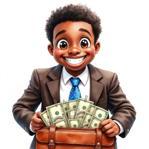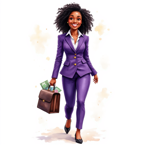 free clipart illustration of black business person holding a bag filled with money (1)