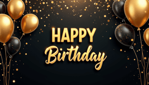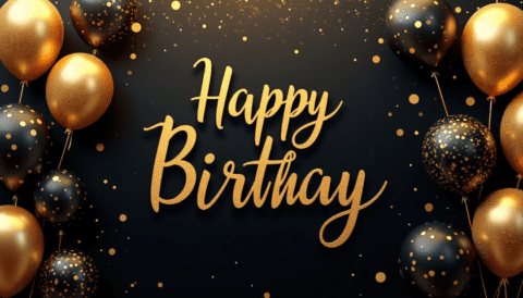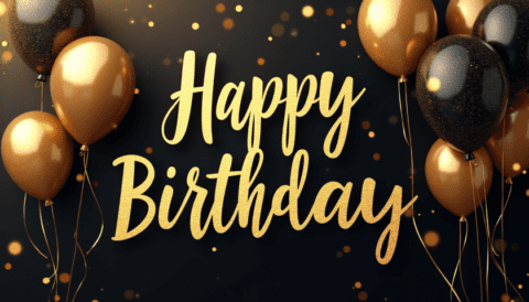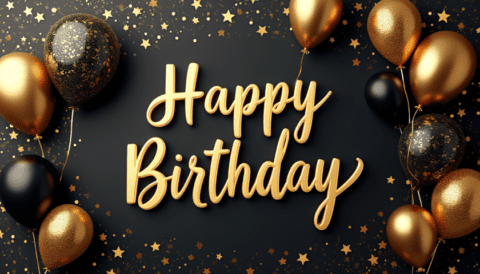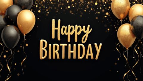 Free clipart illustration of a black and gold happy birthday banner design (4)
