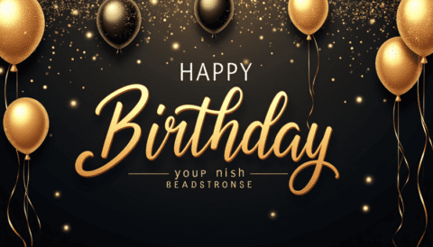 Free clipart illustration of a black and gold happy birthday banner design (5)