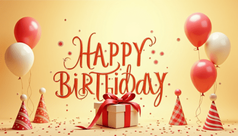 Free clipart illustration of a red and gold themed happy birthday banner design (8)