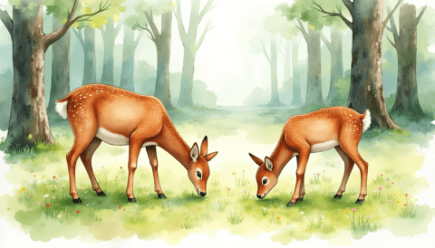 deer in forest grazing