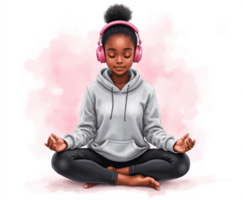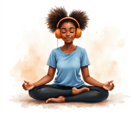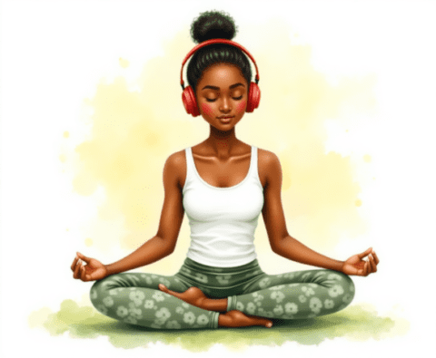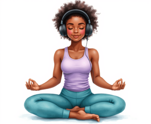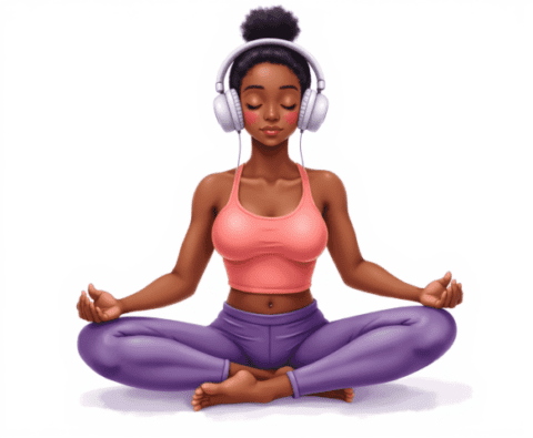 free clipart illustration of a healthy black female sitting in a yoga pose meditation (1)