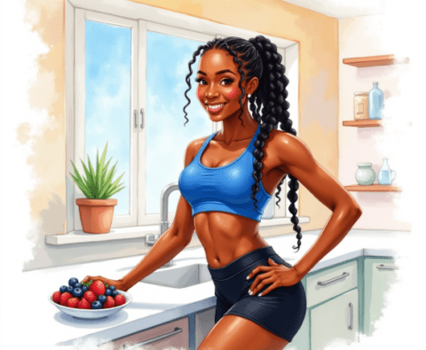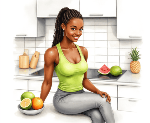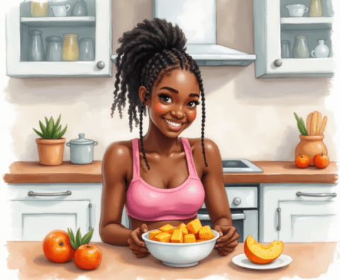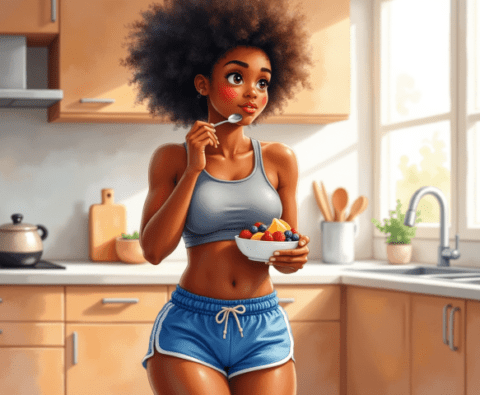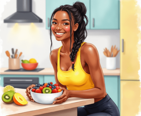 free clipart illustration of fit black female eating healthy fruit bowl (6)