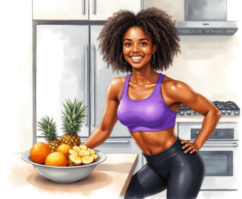 free clipart illustration of fit black female eating healthy fruit bowl (1)