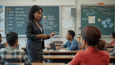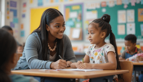 free clipart illustration of teacher helping students in a classroom (3)