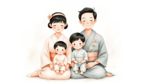 family portrait in traditional kimonos