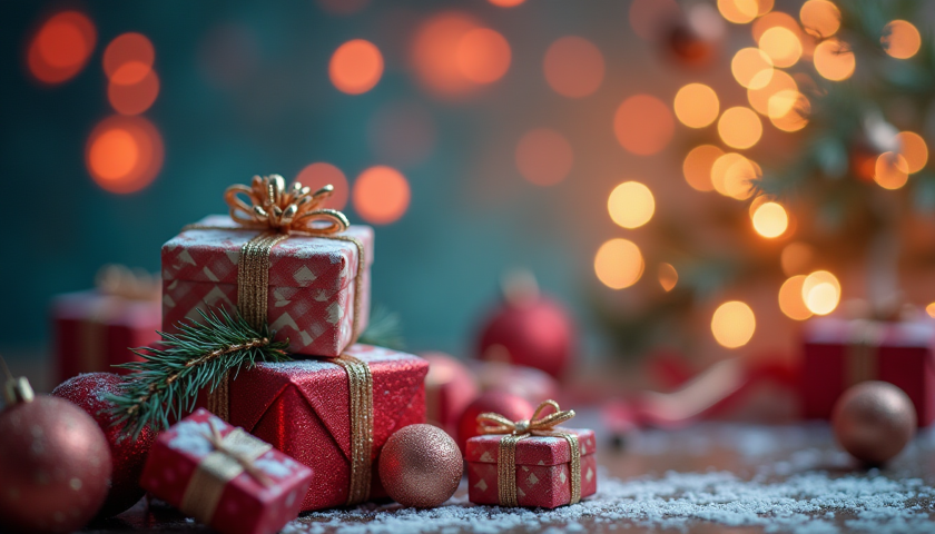 christmas presents bokeh lights