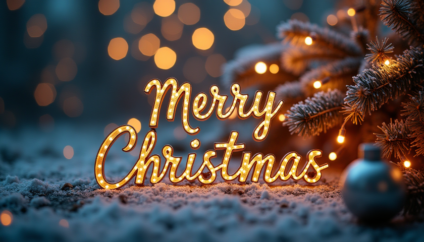 merry christmas decorative lights snow