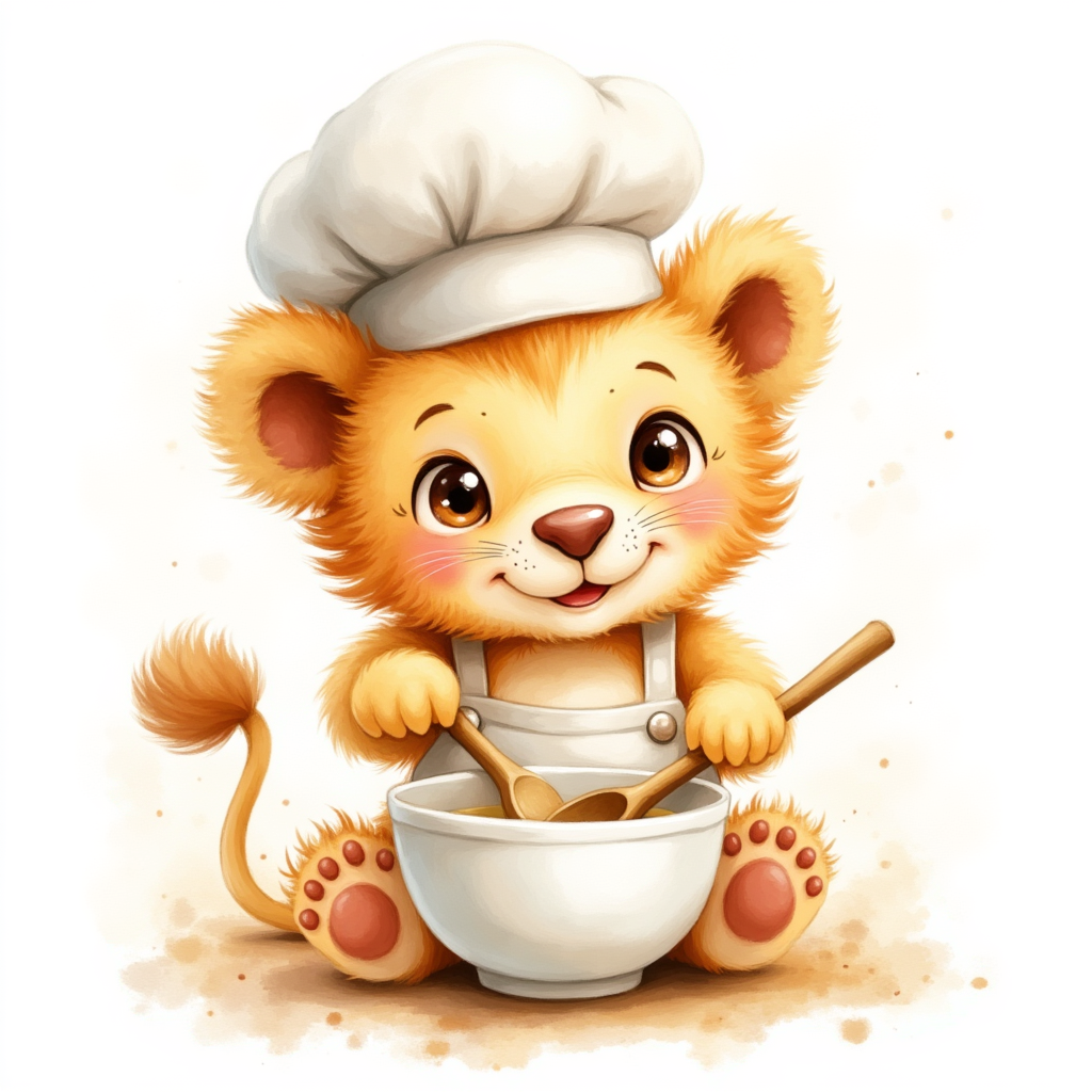 cute chef lion baking