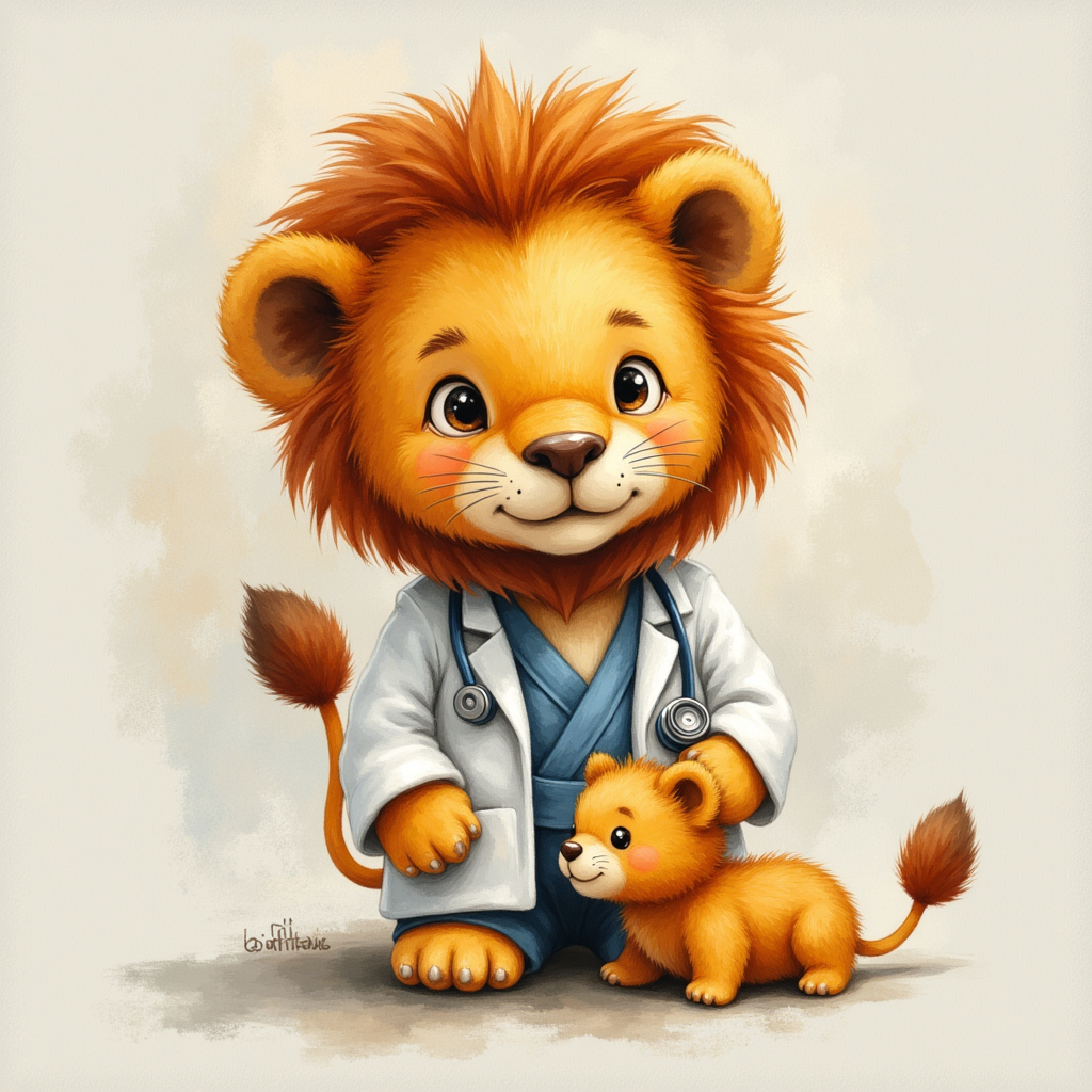 cute lion doctor with cub