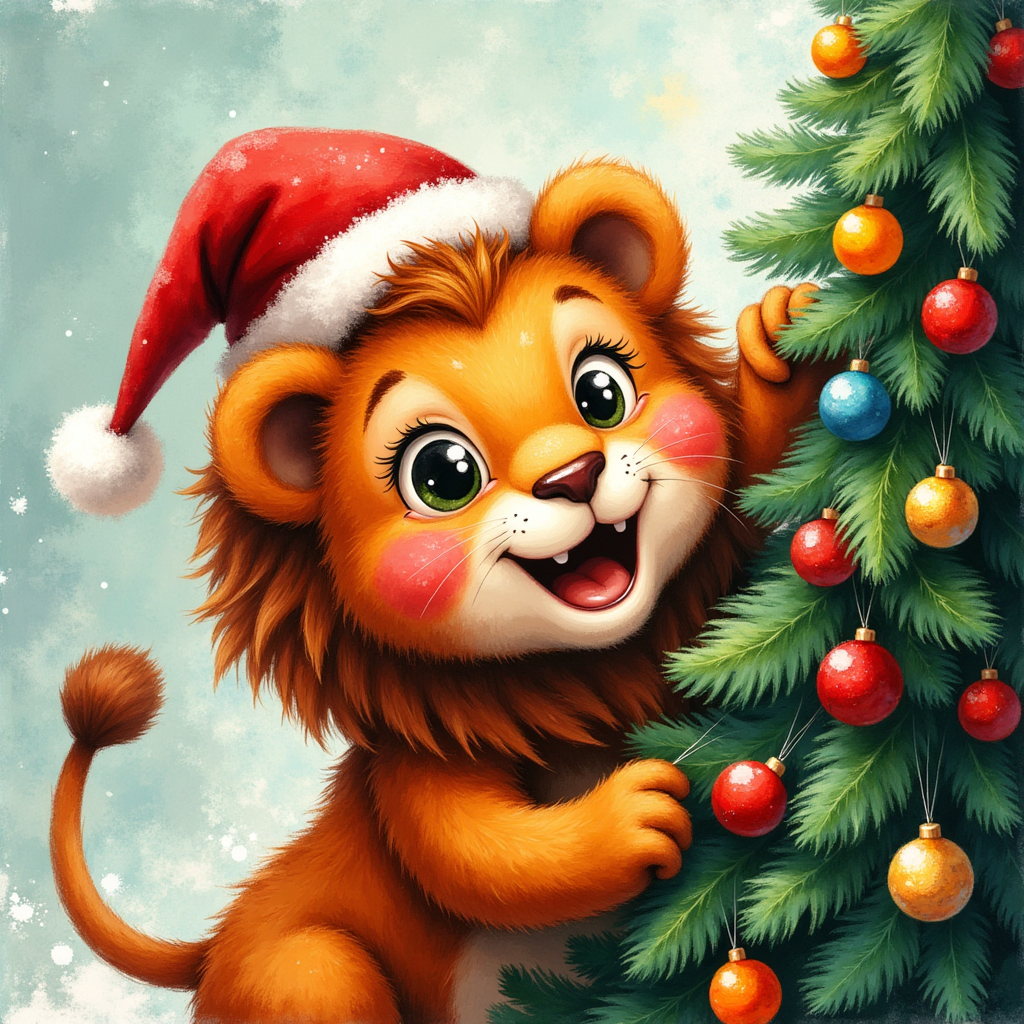 festive lion christmas tree