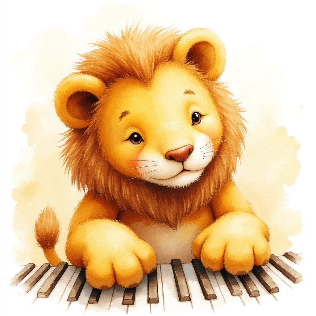 playful lion playing piano