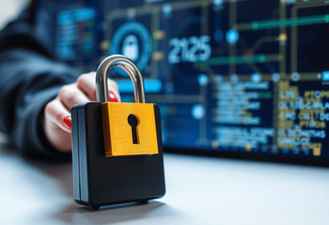 cybersecurity lock and monitor display