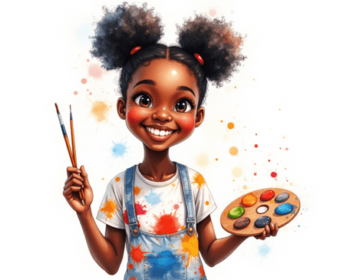 young artist with paintbrushes and palette