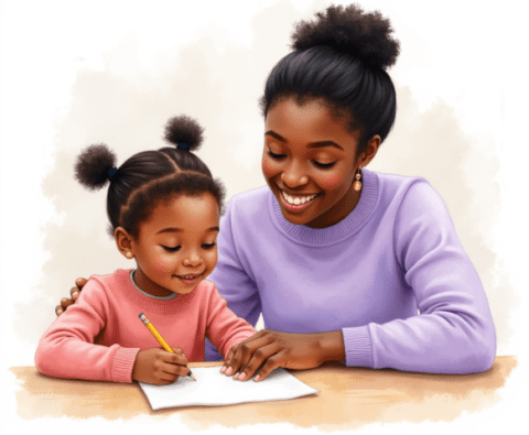 free clipart illustration of a black parent helping child with school work (1)